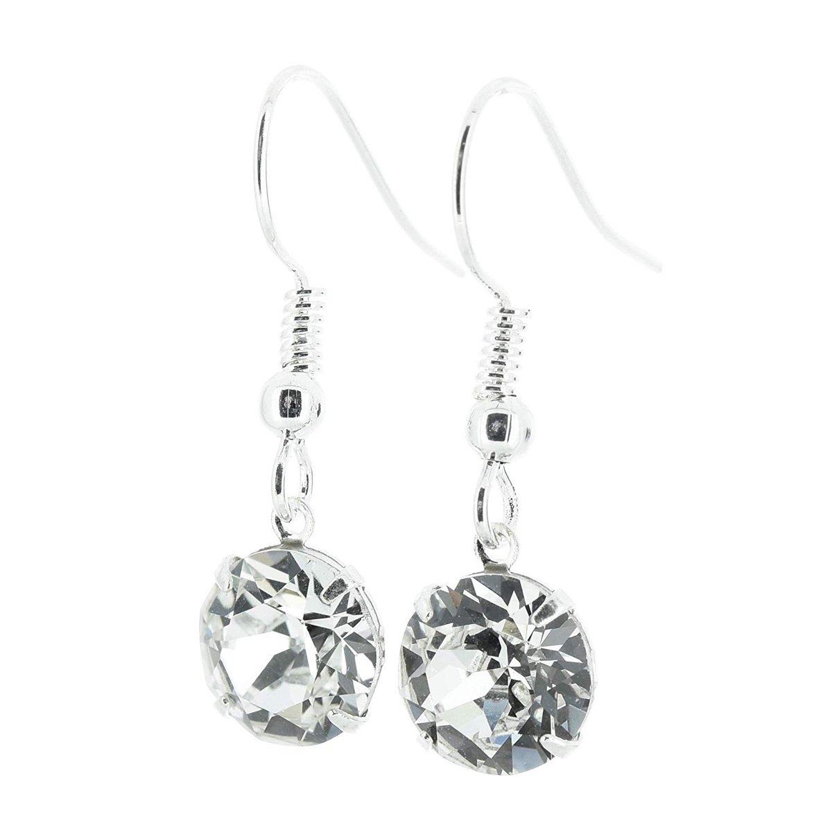 Pewterhooter Drop earrings for women made with sparkling Diamond White crystal from Swarovski®.