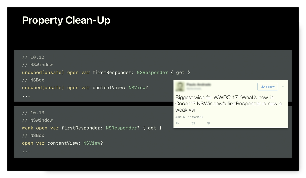 #WWDC17 “Cocoa Development Tips”.Thanks. Twitter will use this to make your timeline better. Undo -