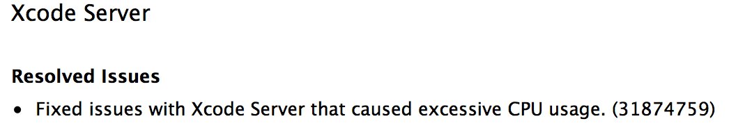 Xcode 8.3.3 supposedly fixes the high CPU usage on Xcode Server
