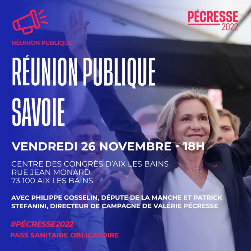 #Pécresse2022 @vpecresse Retrouvons nous ce vendredi, Dès 18h, à Aix les Bains Centre des Congrès. Avec Patrick#Stefanini.#Valerie2022.pic.twitter.com/i3ligJ7dcm
