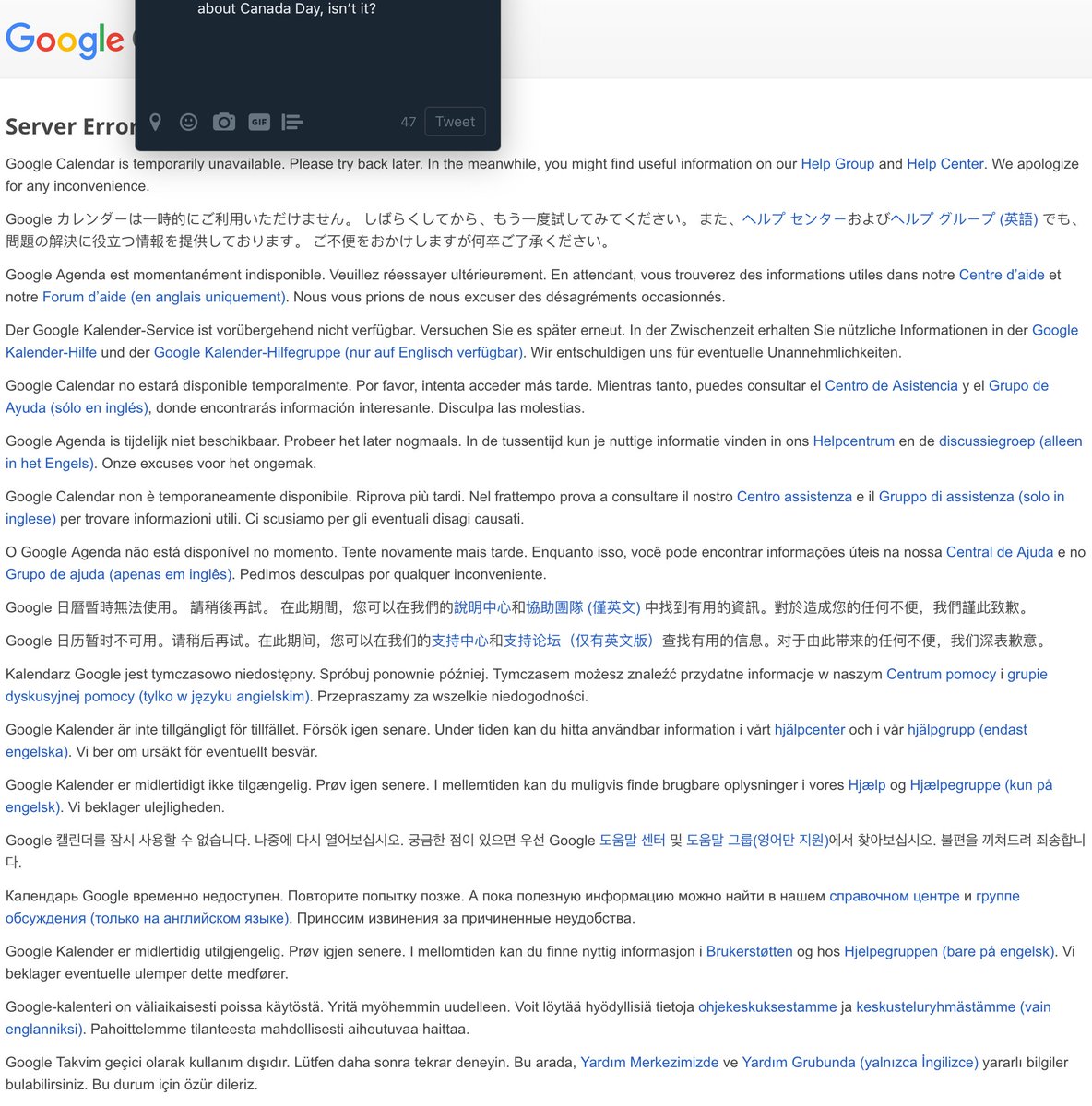 Google calendar being down is a secret plot to get us to forget about Canada Day, isn’t it?pic.twitter.com/VyPYS99io8