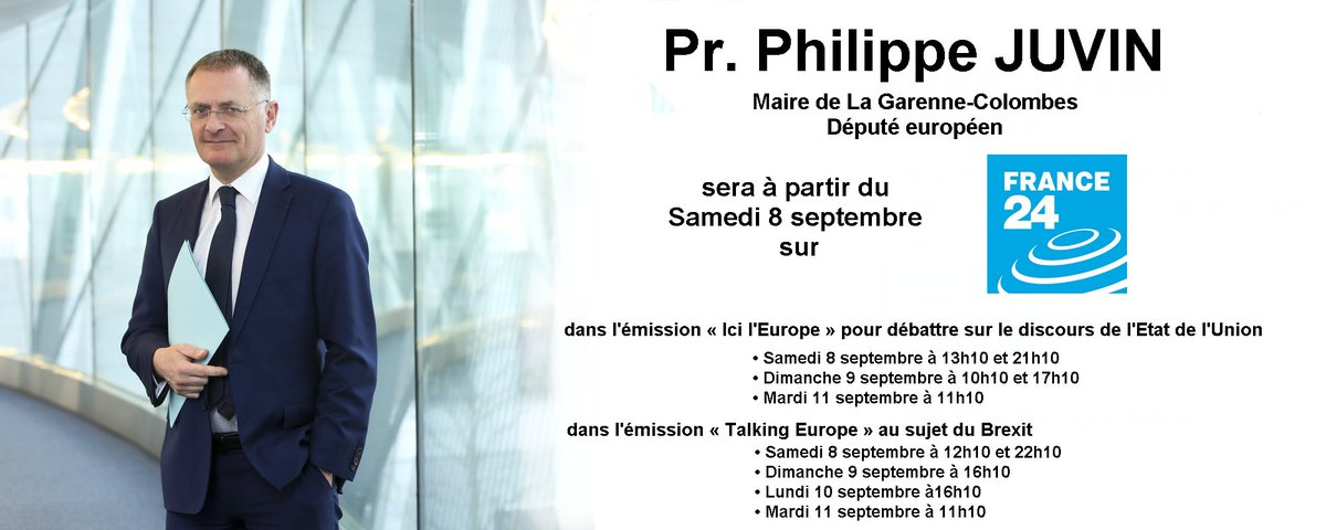 Retrouvez-moi ces prochains jours sur @FRANCE24 - @France24_fr dans l'émission Ici l'#Europe présentée par @CarodeCamaret sur le discours de l'Union et sur @France24_en dans Talking Europe présentée par @ACatInParis sur le #Brexit @lesRepublicains @PPE @PPE_FR @EPPGroup @EPPpic.twitter.com/C5LOl1jtNR