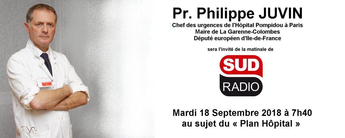 Je serai l'invité de la matinale de @SudRadio mardi 18 septembre à 7h40 au sujet du #planhopital au micro de @PatrickRogerE