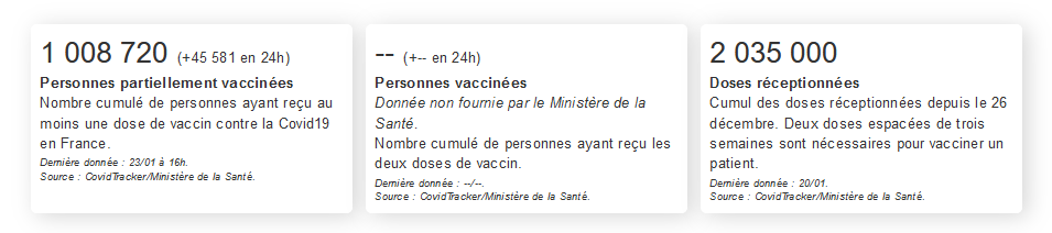« 1.000.000 de doses injectées », et l’on ne nous dit pas combien de 1ères doses, ce qui équivaut à ne pas dire le nombre de personnes non-vaccinées selon la posologie, et donc avec le rappel (dont on nous a indiqué qu’il pouvait être espacé de 6 semaines et non plus de 3).