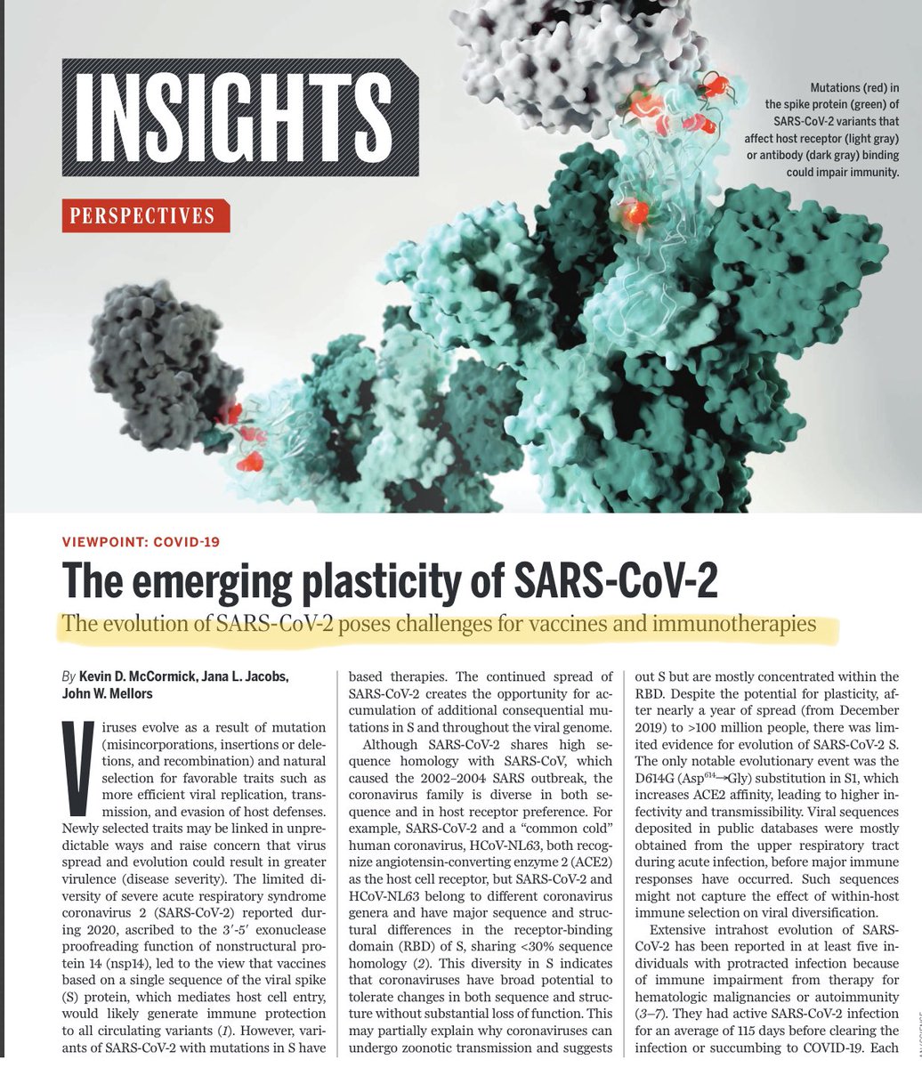 Dans Science: - Effets de différentes mutations sur transmissibilité (Tr) efficacité vaccinale (Ef) et virulence (Vi) observées chez variants GB (B117), SA (B1351), BR (P1) - les mutations sont favorisées par circulation active/vaccination incomplète - Urgence de les surveillerpic.twitter.com/ZA6E96c8SP