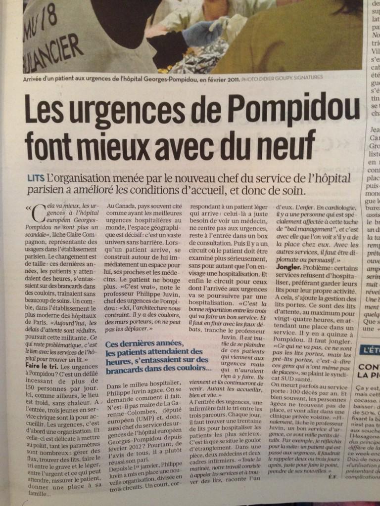 Dans @libe, le résultat (positif) de la réorganisation des urgences à Pompidou #HEGP @APHP_Actualites @umppic.twitter.com/rp3hi4n68c