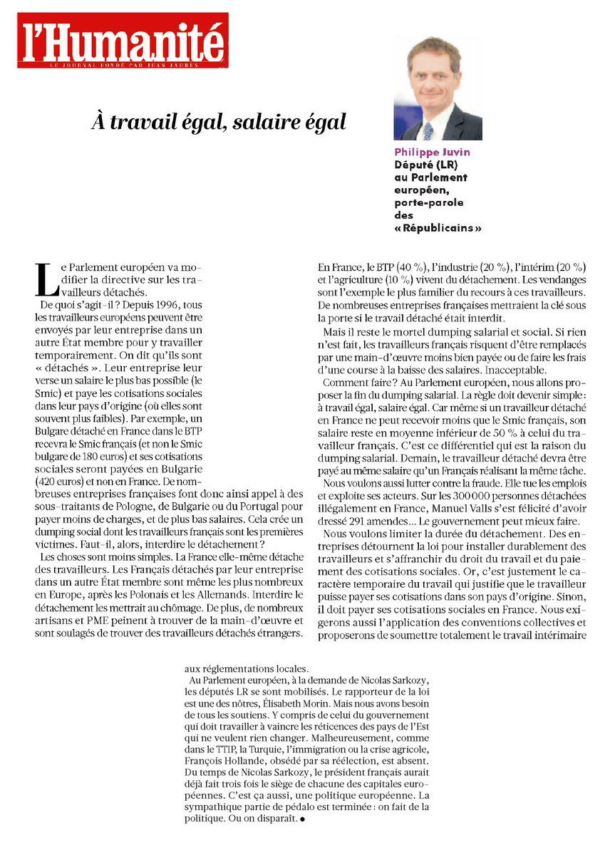 Ma tribune dans l'@humanite_fr: A travail égal, salaire égal http://www.humanite.fr/travailleurs-detaches-en-europe-comment-empecher-le-dumping-social-608998 … @lesRepublicains @PPE_FRpic.twitter.com/VtcjJ2VDd3