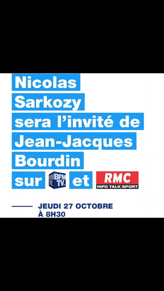 Demain @NicolasSarkozy est sur @JJBourdin_RMC #BourdinDirect à 8h30 ! Qu'on se le dise ! @TTpourlaFrancepic.twitter.com/grTUhCaZB8