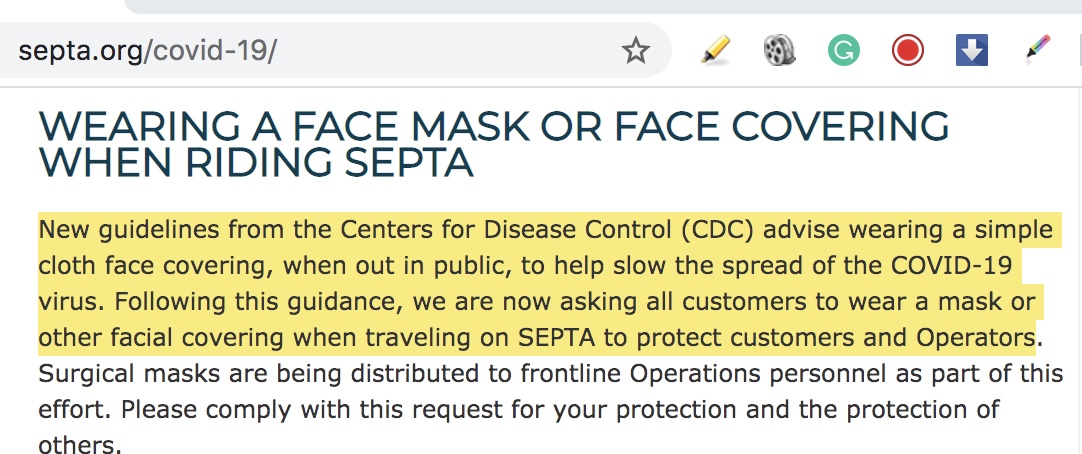 “Asking” doesn’t mean required & “or other facial covering” includes scarfs. Just released yesterday by SEPTA in a news release.pic.twitter.com/llvX6vJl8r