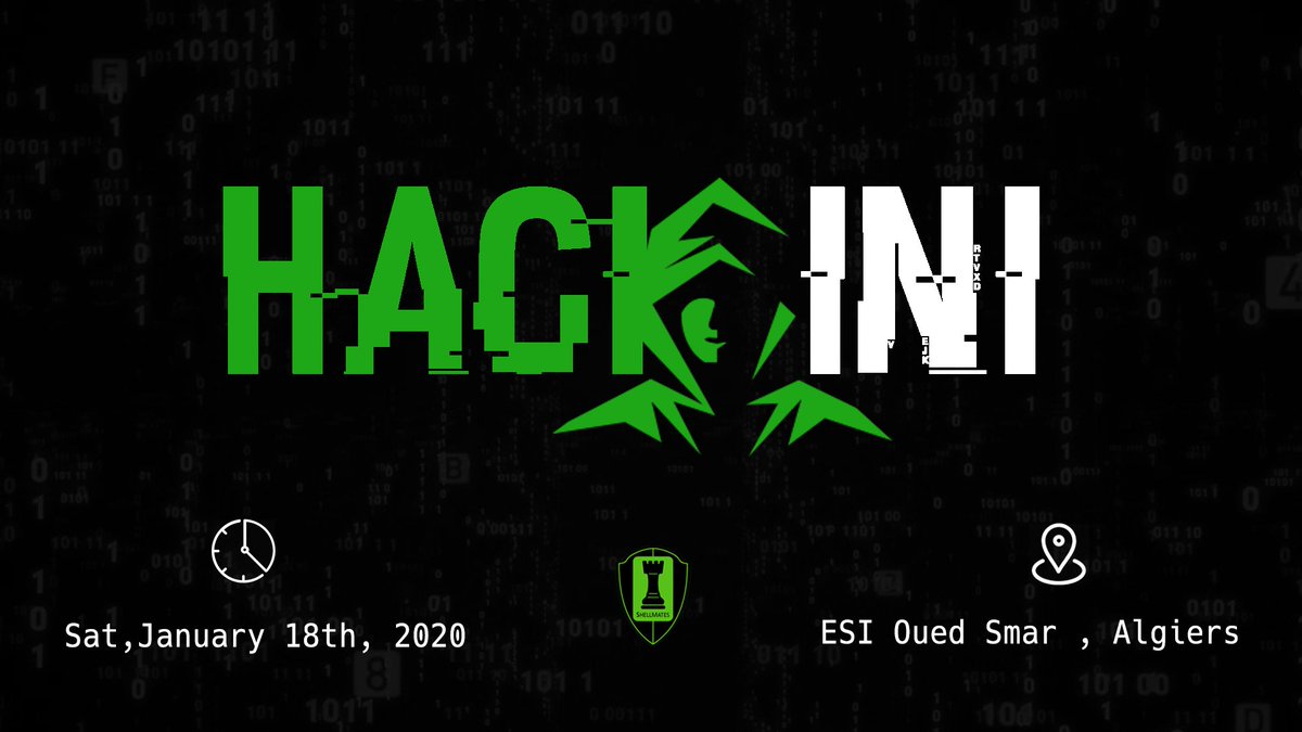 #HackINI , short for Hack Initiation, is an event that gathers infosec enthusiasts and beginners to initiate them to the world of cybersecurity through a great series of activities! JOIN us on Saturday, Jan 18th, 2020 at#ESIpic.twitter.com/orm9glr9O9