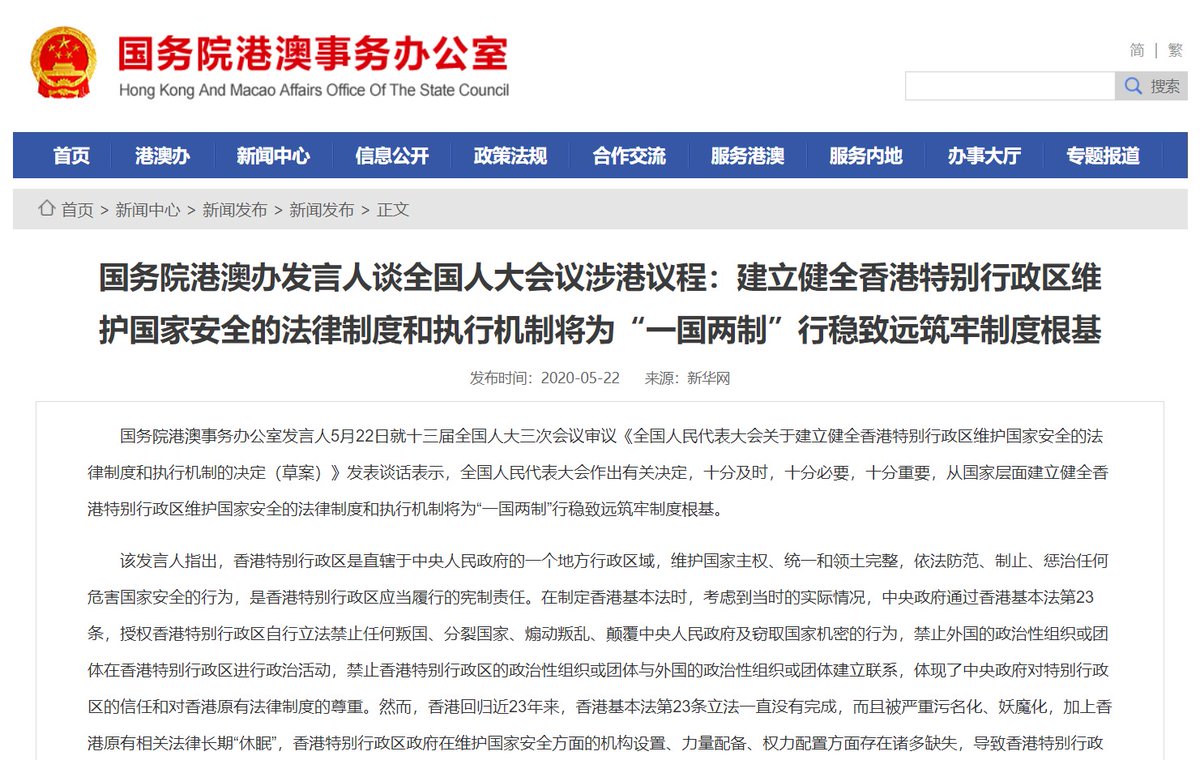 More to come apart from the law: - Chinese national security institutions will set up apparatus in #HongKong according to "needs", so do the HK govt. - Hong Kong Chief Executive has to promote and push for national security education and hands in report to central govt regularly.