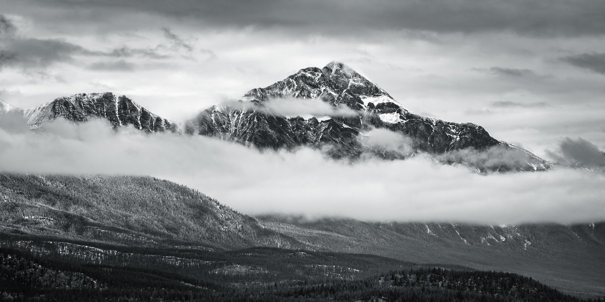 "Valley Clouds" There's a great deal of joy I get from watching low hanging clouds interacting with the mountains. Photo from a trip to the Jasper Skytram a few years ago.