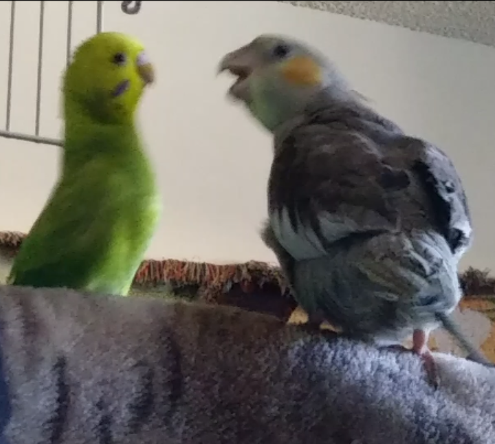 Took video of our birds and found the perfect frame. The budgie has me dying; her neck is usually not that long lolpic.twitter.com/IbxIoZfHz2