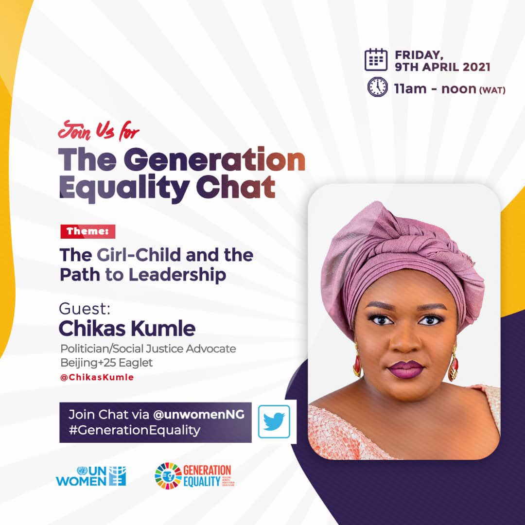 Chat Series featuring @Chikaskumle FRI 9th April, 11am WAT Topic: The Girl-Child & the Path to Leadership#IDeyWithHer#NoWomanNoNaija#ActForEqualpic.twitter.com/prGQqLCXZ2