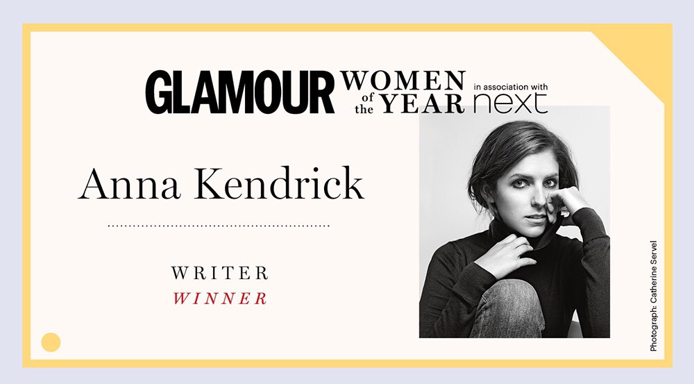 #glamourawards Writer of the Year is@AnnaKendrick47, for her memoir Scrappy Little Nobody. Congratulations Anna!pic.twitter.com/uCCsuuK938