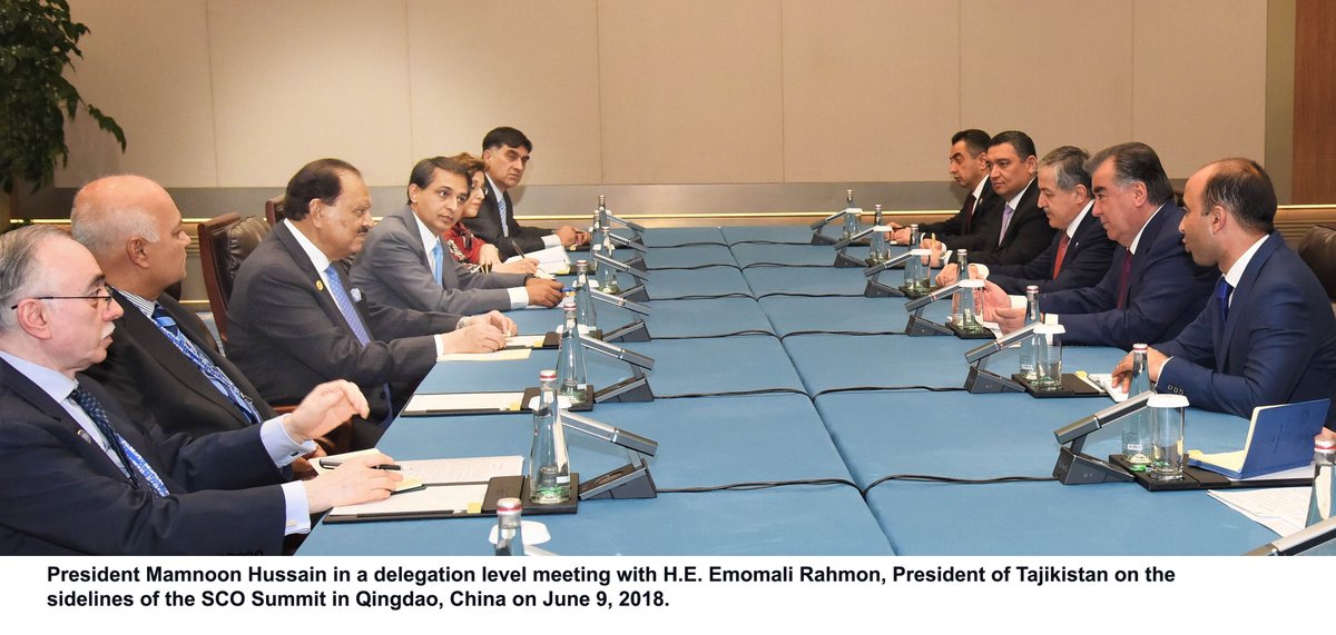 President Mamnoon Hussain met his Tajik counterpart Emomali Rahmon on the sidelines of the Qingdao Summit on Saturday. Both leaders held in-depth consultations on matters of mutual interest.pic.twitter.com/98uLBhGSQh
