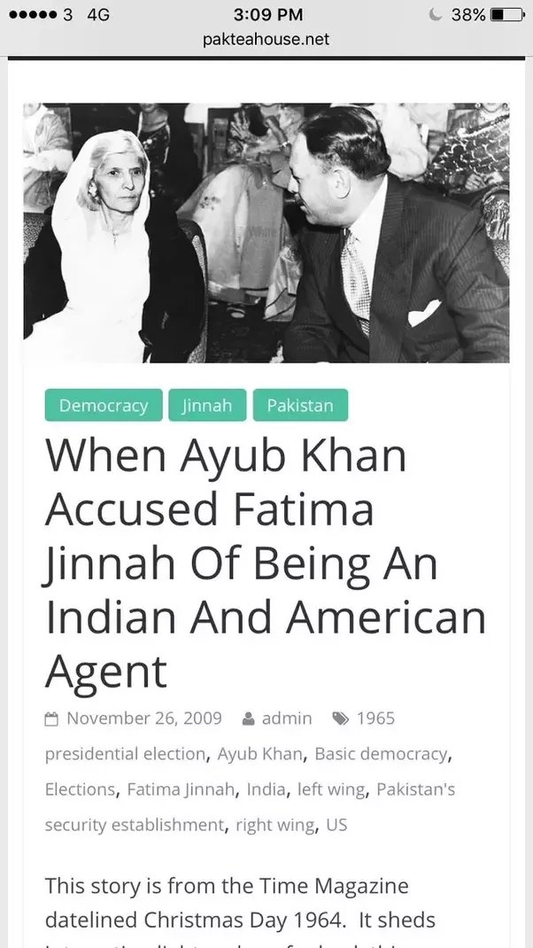 She was also a seasoned politician and one of the first voices against the military dictatorship of Ayub Khan. Maybe also tell people that?