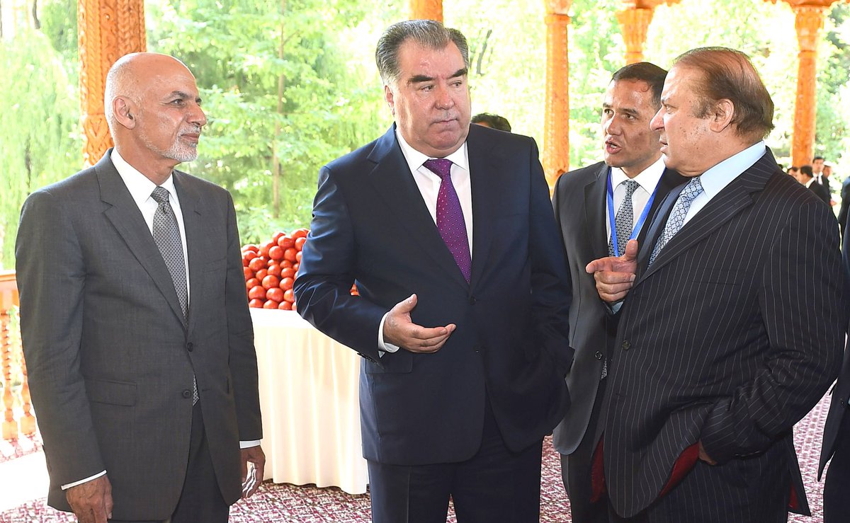 PM #NawazSharif in discussion with Tajik President & Afghan President during visit to agricultural exhibition in #Dushanbepic.twitter.com/lOAGvfn19r
