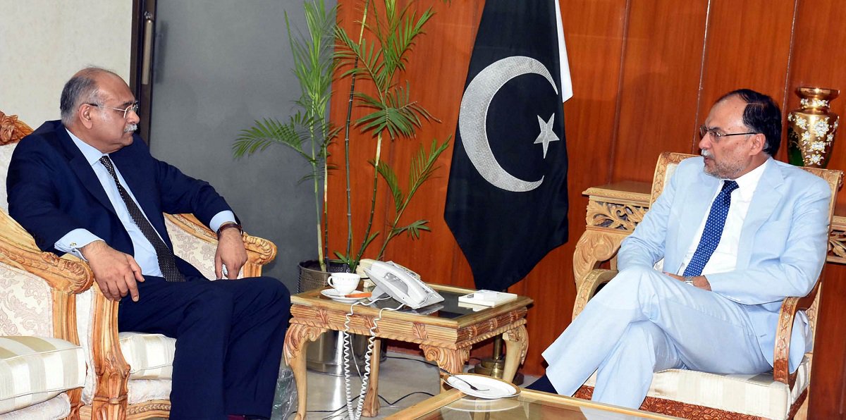 Ahsan Iqbal, Najam Sethi and PCB Official
