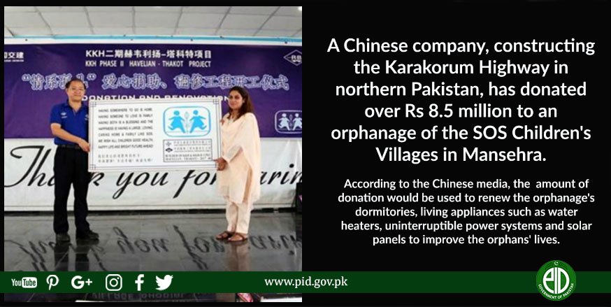 Chinese company donated Rs 8.5million to SOS Children's Village in Mansehra. #PakChinapic.twitter.com/a0MuKPI3kA