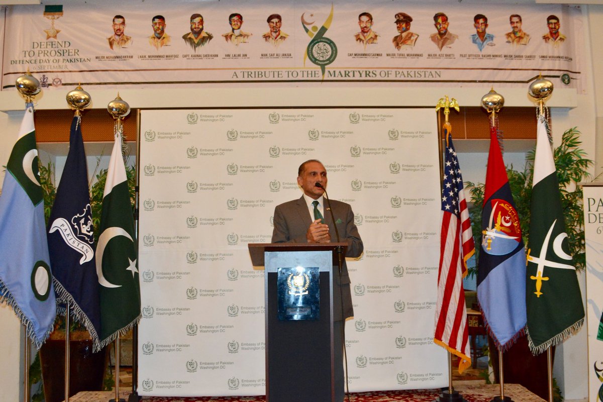Ambassador Aizaz Chaudhry addressed the Defence Day Reception to commemorate the 52nd Defence Day of #Pakistan held at @PakEmbassyDCpic.twitter.com/e2ayRtk94i