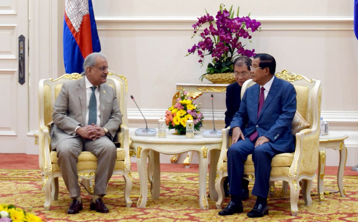 Chairman Senate of #Pakistan, Mian Raza Rabbani meeting Prime Minister of the Kingdom of #Cambodia at peace palace Phnom Penh.pic.twitter.com/iksVnpo7H6