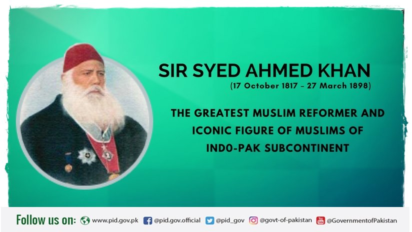 Birth anniversary of Founder of Muslim Renaissance, visionary educationist, and an authoritative historian Sir Syed Ahmed is observed today.pic.twitter.com/joGu8oPC1J