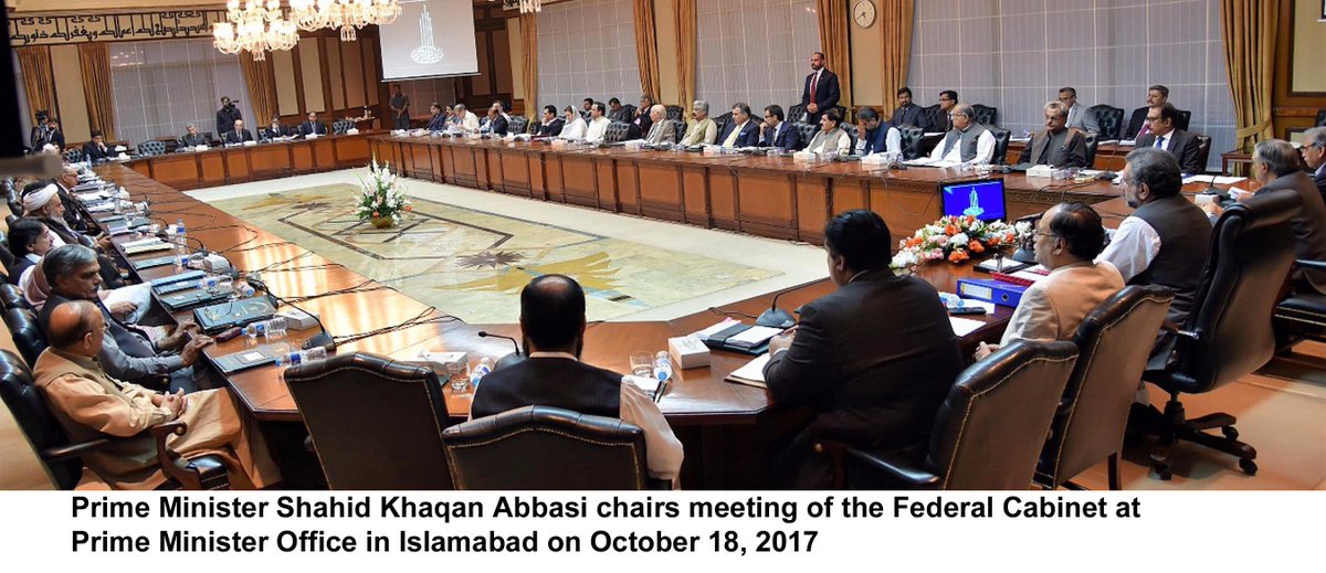 PM Shahid Khaqan Abbasi chaired a meeting of Federal Cabinet today at Prime Minister Office in #Islamabad.pic.twitter.com/2SMpbIAitk