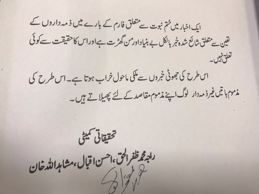 احسن اقبال صاحب سے اتنی سی التجا ہے کہ اس بیاں پر درج دستخطوں کو با ضابطہ طور پر تسلیم کرتے ہوئے مجوزہ کمیٹی ممبر کا نام آشکار کر دیں۔