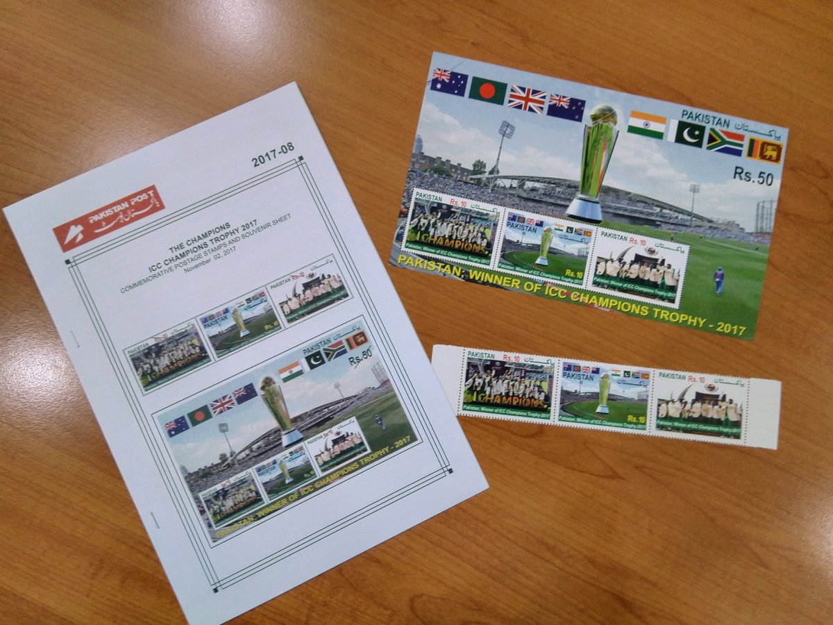 #ICC Champions Trophy 2017 winners Commemorative Stamps issued by #Pakistan Post.