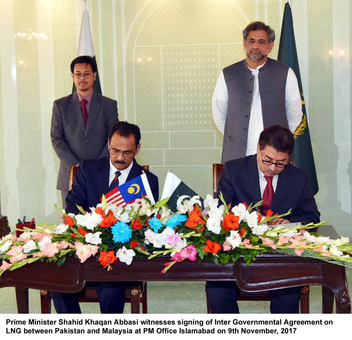 Prime Minister Shahid Khaqan Abbasi witnessed the signing of Inter-Governmental Agreement on supply of LNG between #Pakistan and #Malaysia.pic.twitter.com/9d4rdSJ2SJ