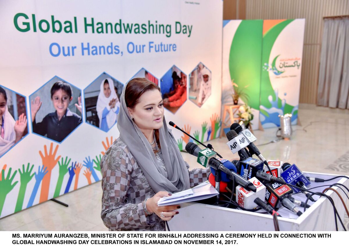 Ms. Marriyum Aurangzeb, Minister of State for IBNH&LH addressing a ceremony held in connection with Global Hand Washing Day celebrations in #Islamabad on November 14, 2017. #globalhandwashingdaypic.twitter.com/wmB1sjmWWI