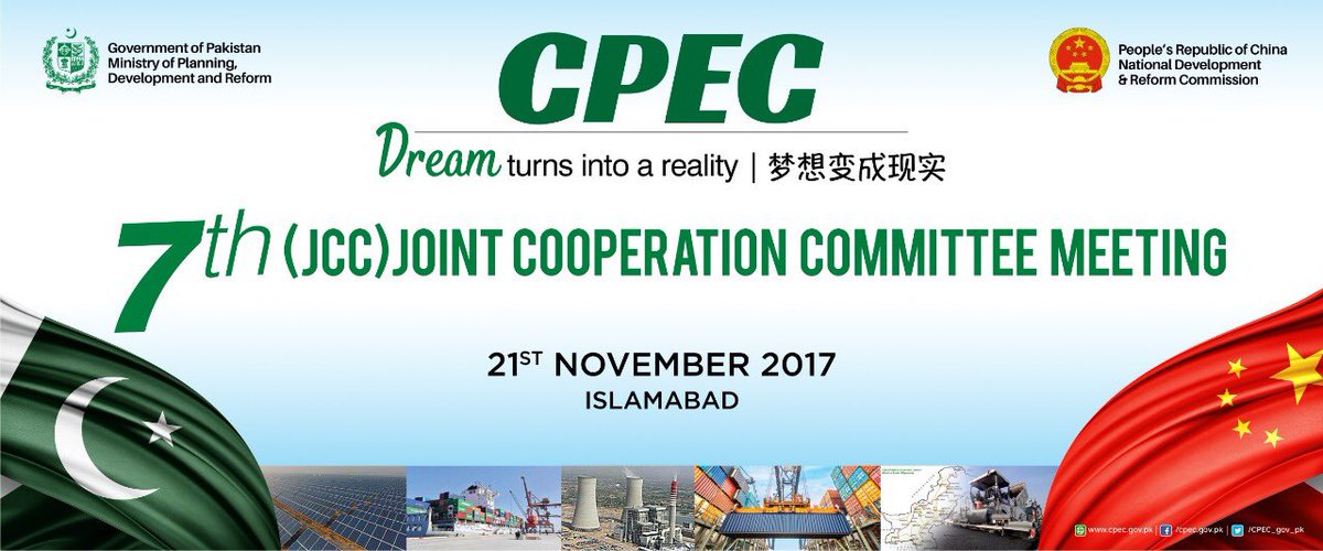 7th Joint Coordination Committee (JCC) on #CPEC to commence on 20-21 November 2017, in Islamabad.pic.twitter.com/9mHoYPFnwk
