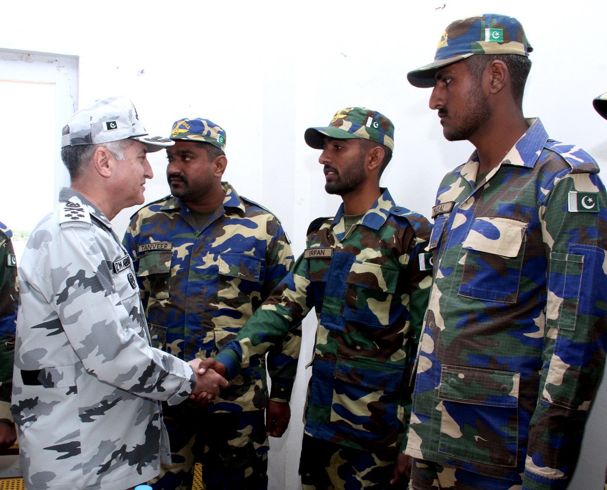 Chief of the Naval Staff Admiral Zafar Mahmood Abbasi visited #Pakistan Navy’s forward posts in the Creeks Area near Pak-India border, to review the operational readiness of deployed Pak Marines.pic.twitter.com/nohtjNuEaf