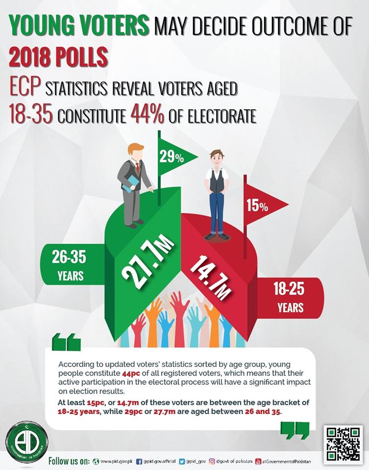 Election Commission of #Pakistan reveals voters aged 18-35 constitute 44% of #electorate with #youth having a significant impact on #elections.