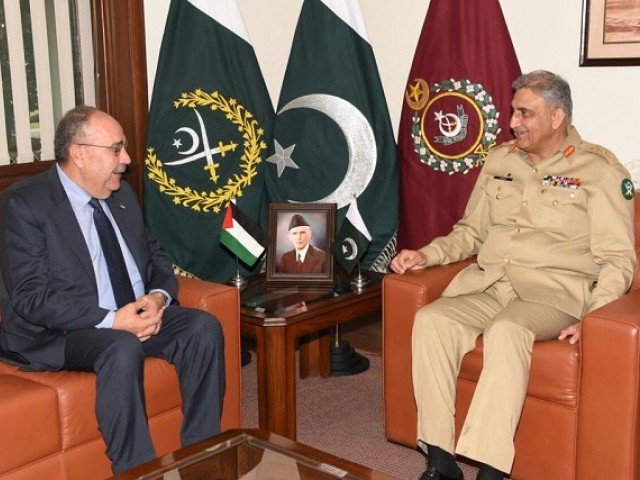 #Pakistan views the unresolved #Palestine issue at par with the plight of the people of occupied #Kashmir. Chief of Army Staff (COAS) General Qamar Javed Bajwa assured Palestinian envoy who called on him at the General Headquarters in Rawalpindi on Tuesday.pic.twitter.com/qwkOtXb4RL