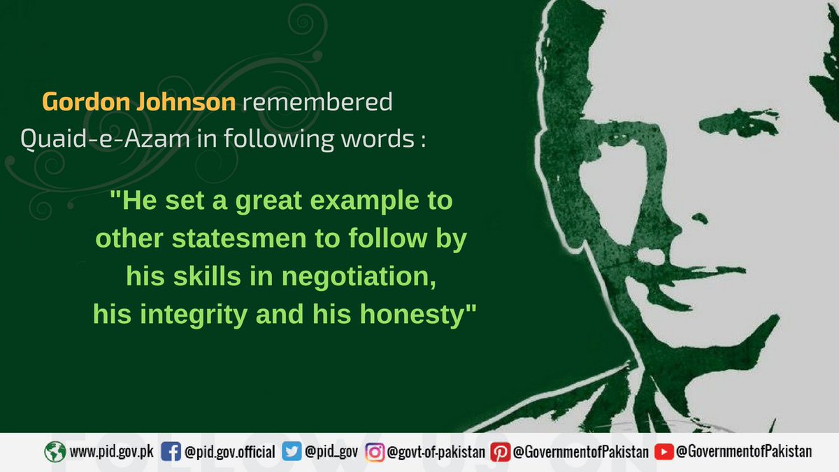 To judge stature of a personality, it is important to know what the contemporaries and famous Personalities say about the qualities of a person. Gordon Johnson passed following remarks about the Founding Father of #Pakistan, #QuaidEAzam Muhammad Ali #Jinnah.