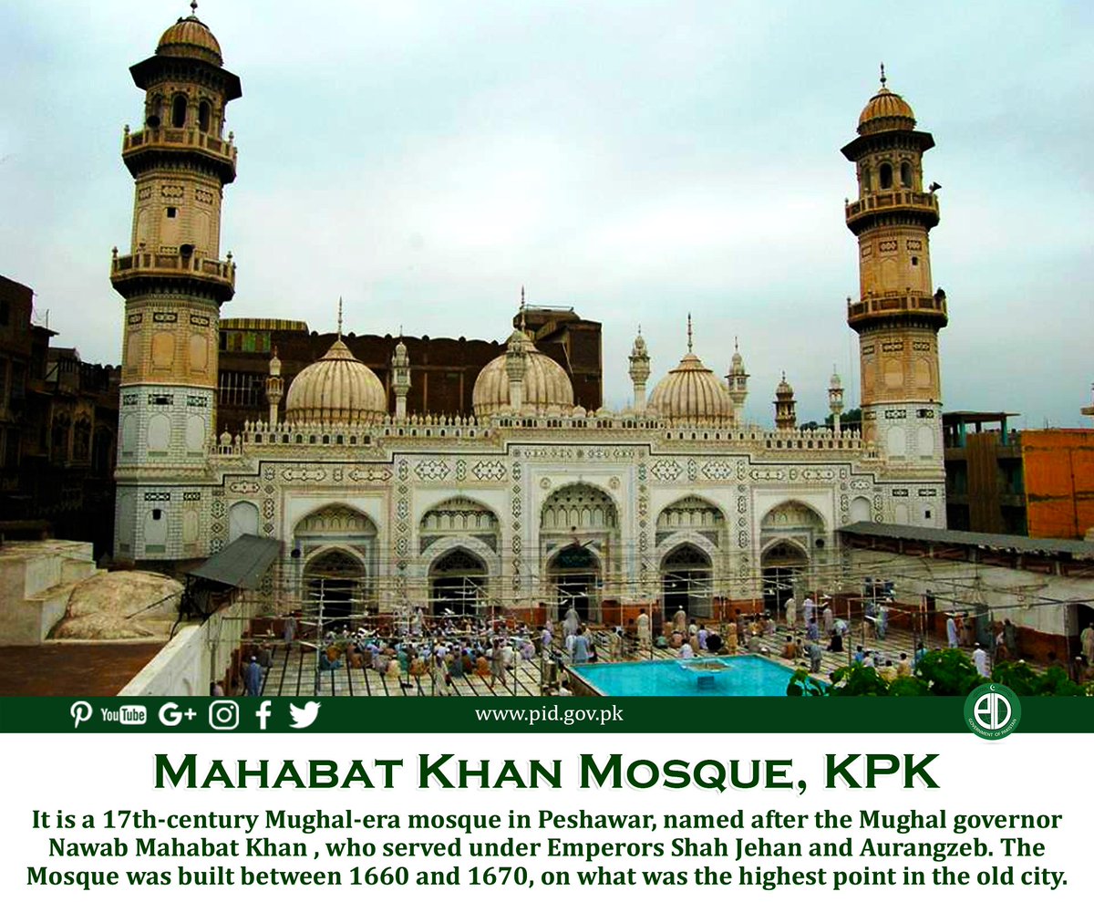 Superb frescos of floral motifs, leaves, vases, and intertwined foliage adorn the walls and ceiling. Verses from the Holy Quran are also most elegantly painted. #Architecture #Mosque 🕌 #Peshawar #BeautifulPakistan 🇵🇰 @Pakistaninpics @PakistanNaturepic.twitter.com/JeBhhpHwhf