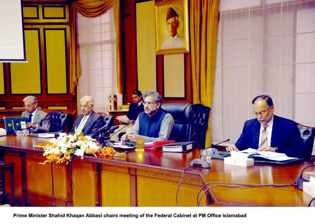 Federal Cabinet reiterated that #Pakistan has rendered huge sacrifices, both in terms of loss of precious human lives and substantial damage to the economy. Achievements made by Pakistan in curbing the menace of #terrorism have been acknowledged throughout the world.pic.twitter.com/14tODIATAa