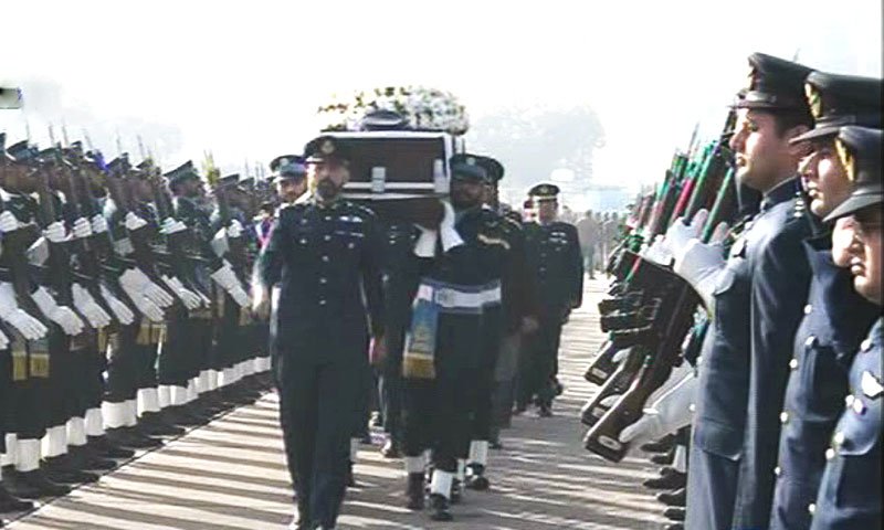 State funeral of former Air Chief Air Marshal Asghar Khan was held at Noor Khan Airbase Rawalpindi this morning. Prime Minister, members of the cabinet, Chiefs of Armed forces and Chairman Joint Chiefs of Staff Committee General Zubair Mahmood Hayat attended the funeral prayerspic.twitter.com/QlOGc6NjxH
