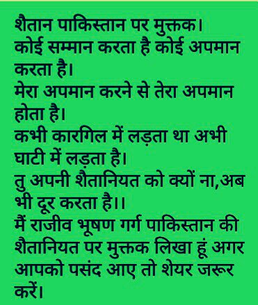 पाकिस्तान की शैतानियत पर भारतीय कवि का मुक्तक जरुर पढें।pic.twitter.com/soXBwv2NKo