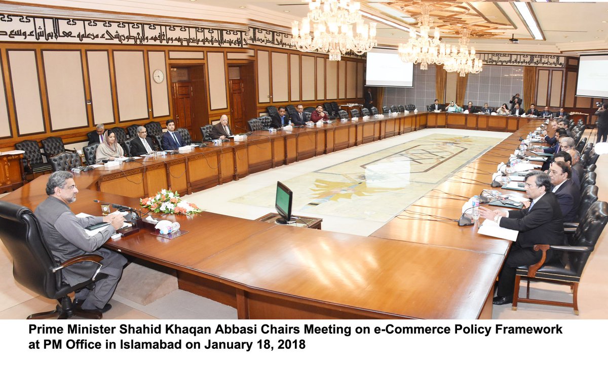 Prime Minister Shahid Khaqan Abbasi directed Ministry of Commerce to continue engaging the private sector in finding solutions to the issues such as #taxation and provision of a level-playing field to the local companies involved in e-commerce transactions.pic.twitter.com/Fq5YPV3rKO