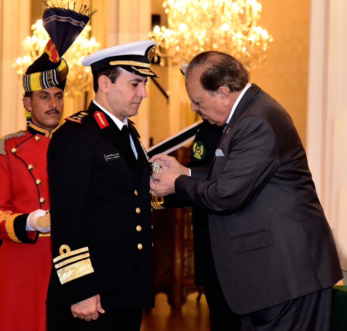 President Mamnoon Hussain conferring Nishan-i-Imtiaz (Military) upon Commander Royal Saudi Naval Forces Vice Admiral Fahad Bin Abdullah Al-Ghofaily at the Aiwan-e-Sadr, Islamabad.pic.twitter.com/hYcp4QVGB2