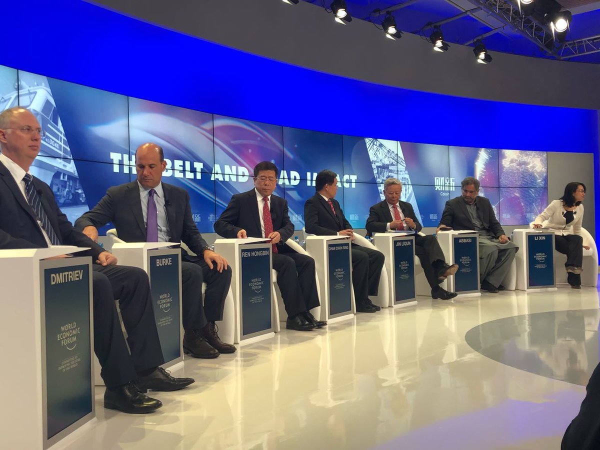 Prime Minister Shahid Khaqan Abbasi at the Public Session on the 'Belt and Road Impact' at the World Economic Forum Annual Meeting 2018 today. #RisingPakistanAtDavospic.twitter.com/D3Nzp4mOrp