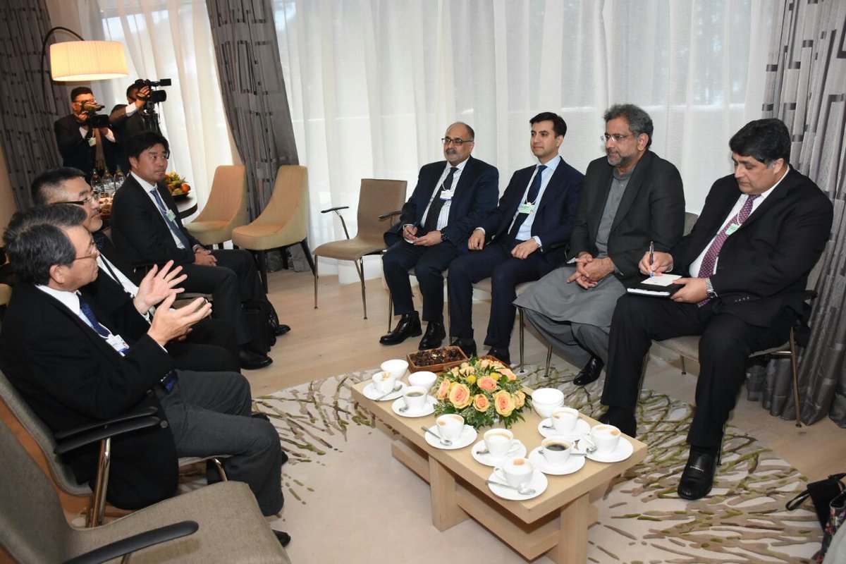 Prime Minister Shahid Khaqan Abbasi met Mr. Ken Kobayashi, Chairman, #Mitsubishi Corporation at the World Economic Forum in #Davos today. Special Assistant to PM Mr. Ali Jehangir Siddiqui and senior government officials were also present. #RisingPakistanAtDavos #WEF18pic.twitter.com/pR60tJIUpk
