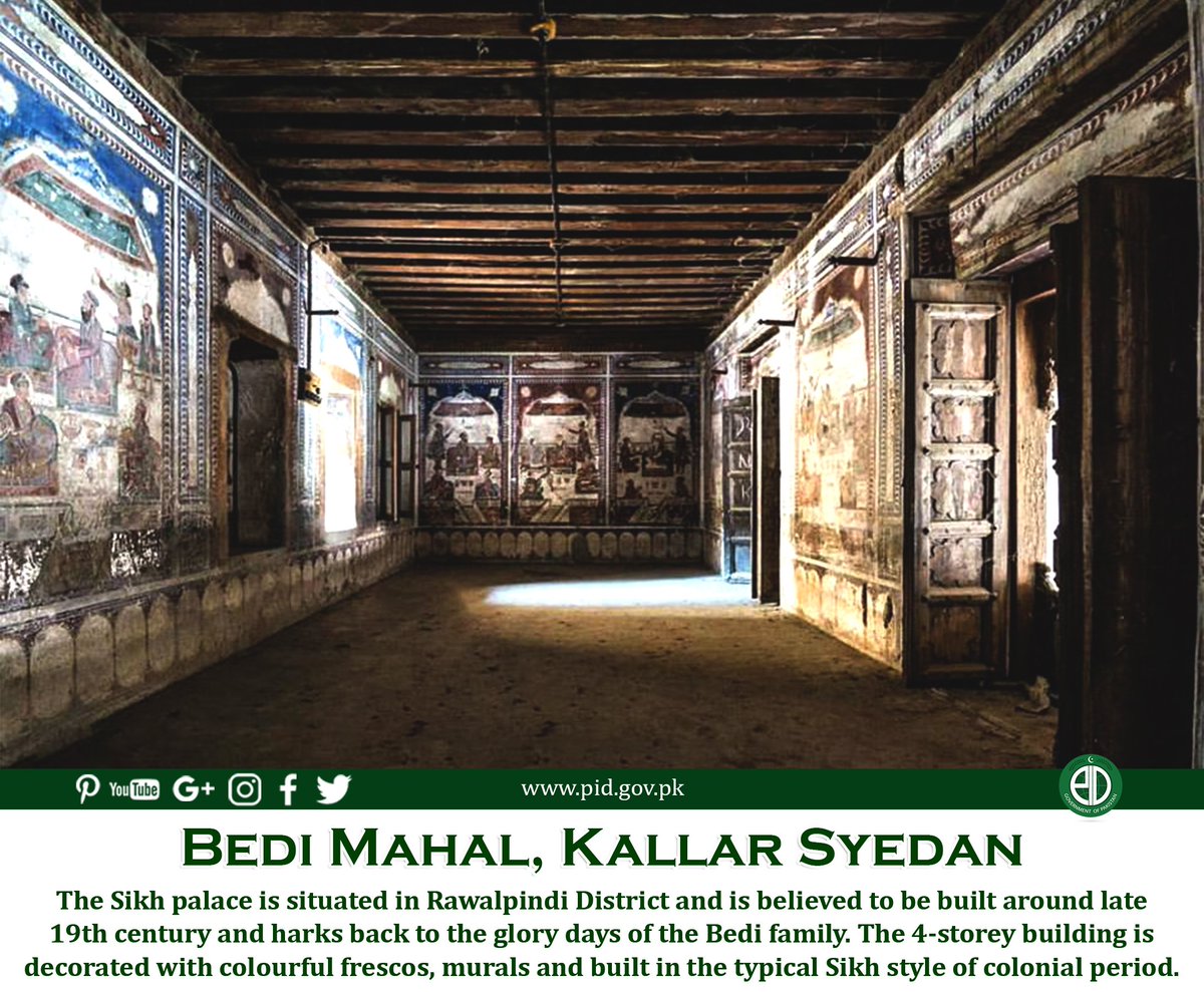 ‘Babay Da Mehal’, or ‘Old man’s palace’, is the popular name for ‘Bedi Palace’, built by Baba Khem Singh #Bedi. The walls & pillars in central courtyard are decorated with a series of images including paintings of Sikh gurus, warriors, Hindu gods & goddesses. #BeautifulPakistanpic.twitter.com/wVvwGb3VWl