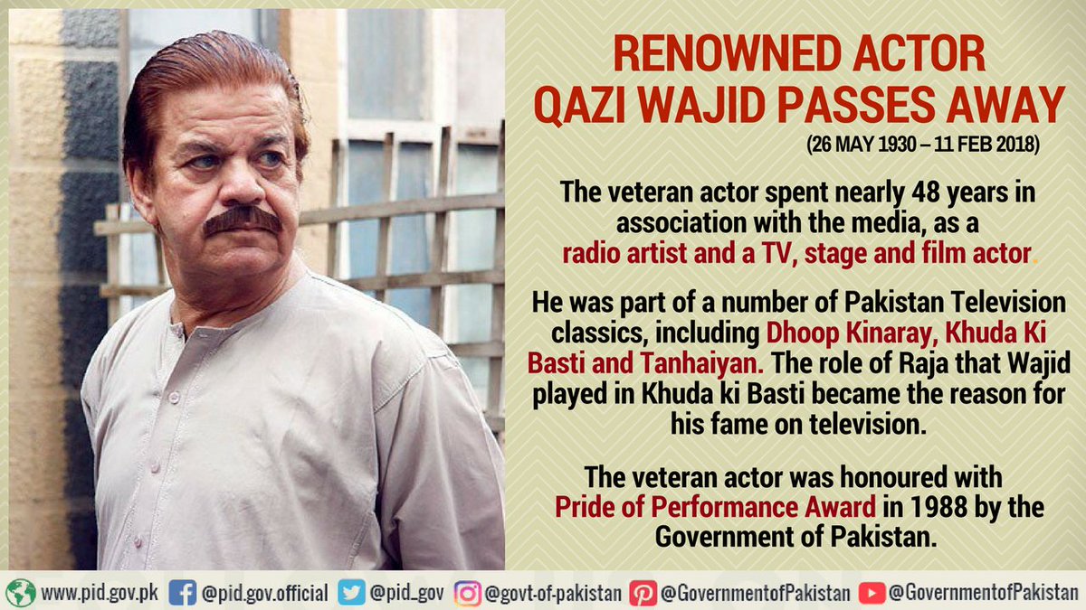 Remembering veteran radio and television personality, a dedicated actor and a lovable human being,Qazi Wajid, who had a career spanning of more than five decades. For his contributions as an artiste, he was honored with the Pride of Performance Award in 1988. #QaziWajidpic.twitter.com/W6NQwjyaya