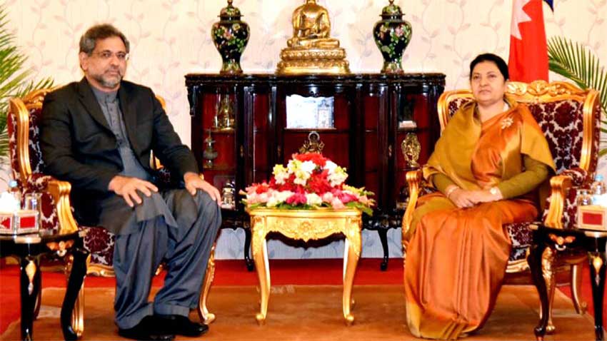~PM Shahid Khaqan Abbasi with Nepalese President Bidya Devi Bhandari in Kathmandu