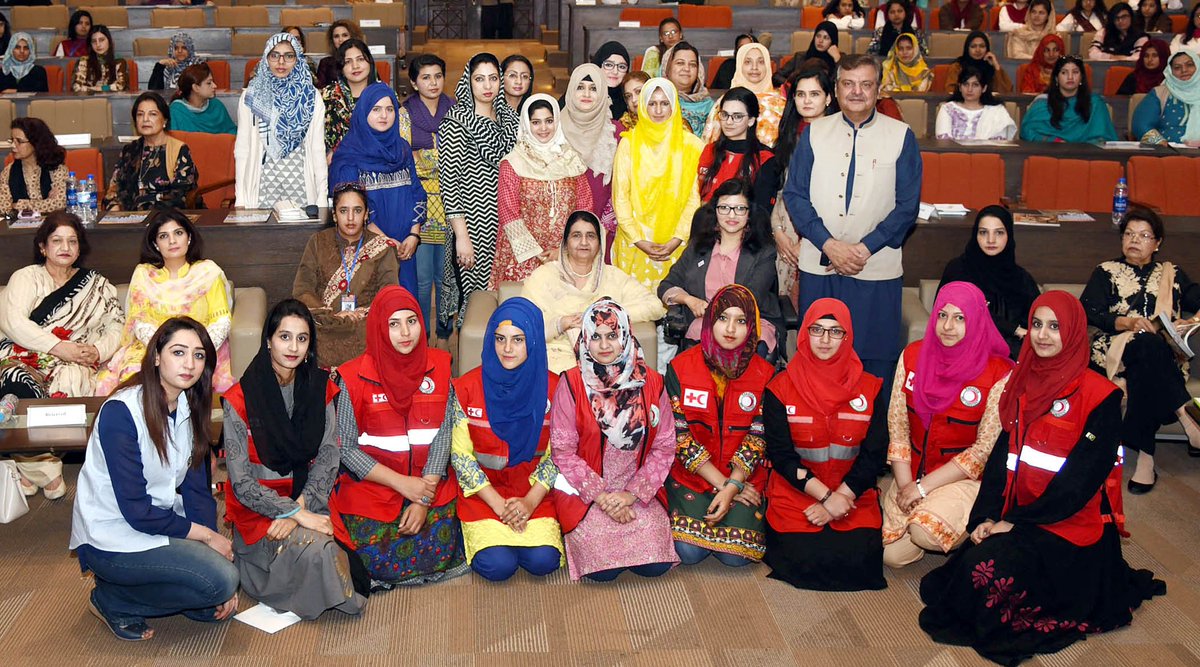 First Lady Begum Mehmooda Mamnoon Hussain in a group photo during the Inaugural Ceremony of “International Women’s Day” at Pakistan Red Crescent Headquarter, Islamabad.
