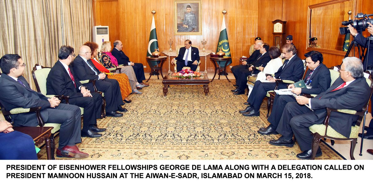 President Mamnoon Hussain says #Pakistan is the most affected country by menace of terrorism in the region. He was talking to the President of Eisenhower Fellowships George de Lama who along with a delegation called on him in Islamabad.pic.twitter.com/J7LSpRJuYI